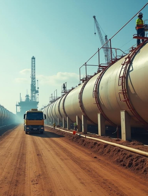 - LPG Storage & Bottling: 5 x 2,000m3 stainless steel cylindrical horizontal tanks
